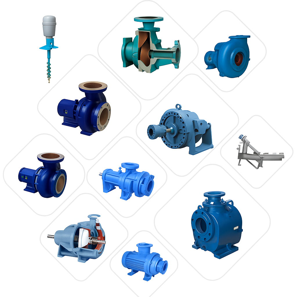 - Water & Waste Water - Water and Tertiary Effluent transfer, Raw unscreened Sewage, Various Biological Sludge & Storm Water applications.